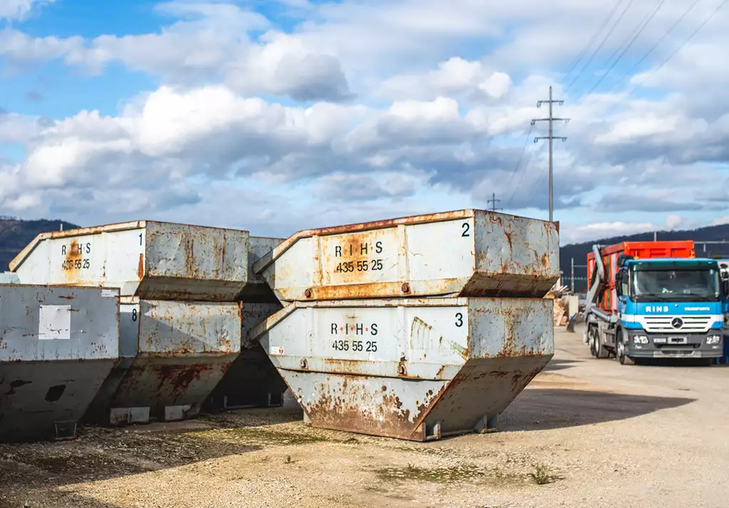 Rihs Transports SA offre un grand choix de bennes de chantier de 4 à 36m3 idéales pour le regroupement et l’évacuation de vos déchets. Nous acceptons tous types de déchets excepté les peintures, aérosols, produits toxiques, pneu, néons.