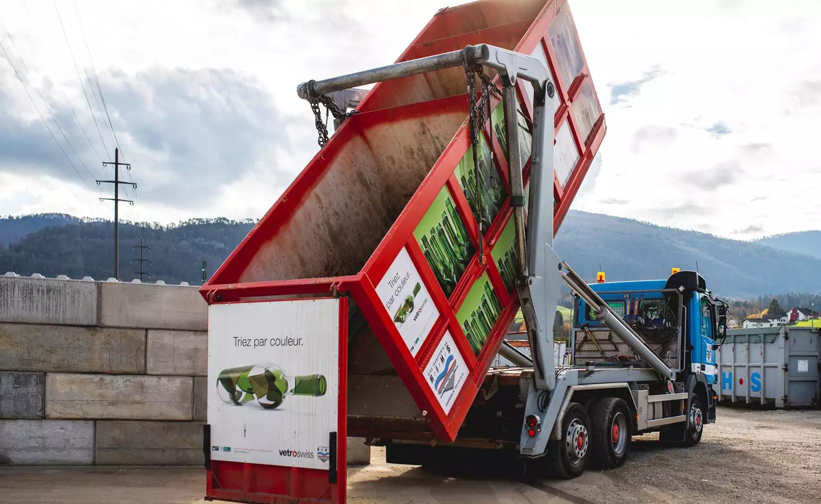 Rihs Transports SA se charge de vidanger les bennes à verres des communes qui lui font confiance.